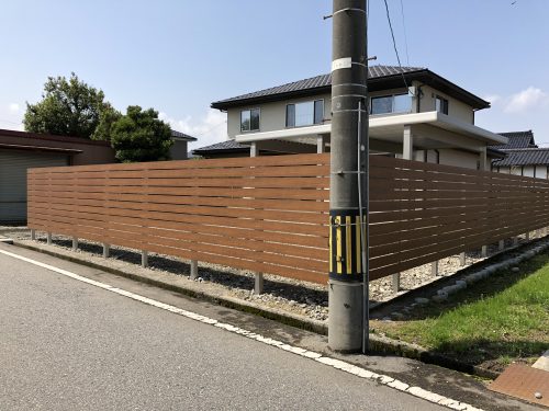 学校側の校門前と自宅のリビングに移り、どの辺の高さだど目線が気にならないか施主様に確認してもらい、理想の高さを決めさせて頂きましたが、既製品のフェンスだと目地の隙間が広すぎて中が思っている以上に見えるのでフェンスの材料を部品取りし、一枚一枚横格子を現場で張り付ける施工方法で、目地の間隔を狭くする事が出来(オススメの目地幅は15㎜)敷地内が見える様で見えない程よい状態をプレゼンいたしました。